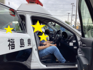 パトカーの運転席や後部座席に座って【⭐はい ポーズ⭐】