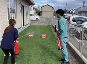 消火器の操作方法を実際に体験し、初期消火の大切さを改めて学びました。