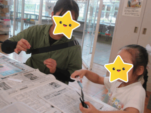 羽を広げてパタパタ!と飛ばしたり、お父さんやお母さんと協力しながら素敵な作品を作ることができました。