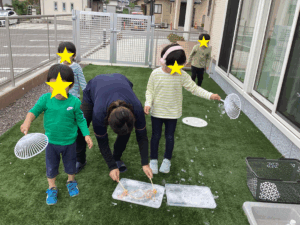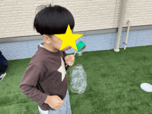 『そっと』『つよく』など吹く強さも調整しながら、シャボン玉の変化を体験できました😊