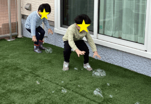 こちらは職員が紐を使って大きなシャボン玉を作ります!