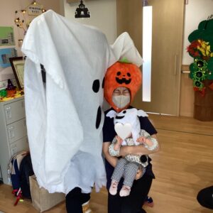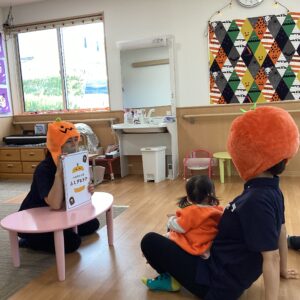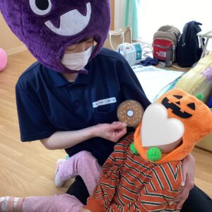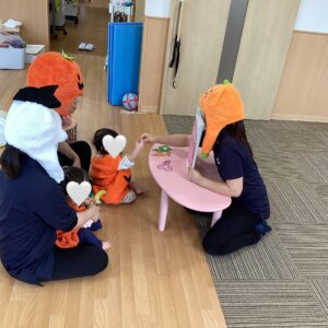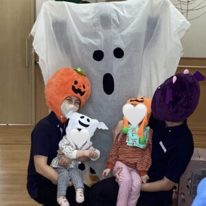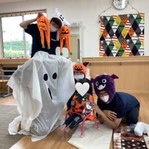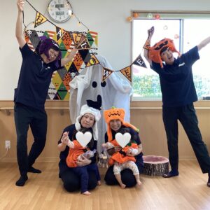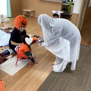 お友だちと職員でカボチャやオバケなどの衣装に仮装をして楽しみました👻