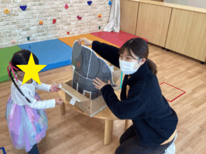 絵本の『へんしんトンネル』を題材に、ペープサートを使用しながら言葉の違いを楽しく学びました😆