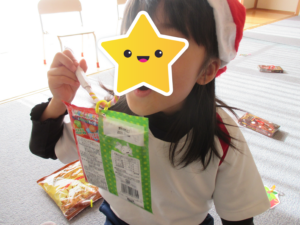 最後には、サンタクロースから素敵なプレゼントを受け取りましたよ♡上手にお礼もできました👏