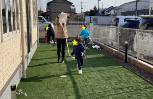お正月ならではの遊び!ということで、子どもたちは寒さも忘れ元気いっぱい走ったり、熱中して遊んでいました😊