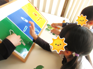 どの色か分からないお友だちがいた時には「こっちだよ!」と教えてあげる様子が見られました😊