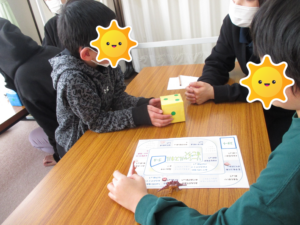 放課後デイサービスでは、相手のお話を最後まで聞いたり、自分が考えたことを相手にお話しできるよう「すごろく」を行いました。
