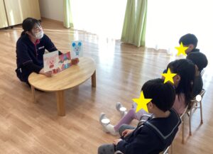 動くペープサートに真剣な様子のお友だち。最後にはみんなで「うれしいひな祭り」歌いました♪