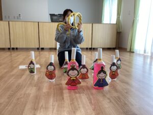 今回のひなまつりゲームは「輪投げ」と「玉入れ」の2種類🙌